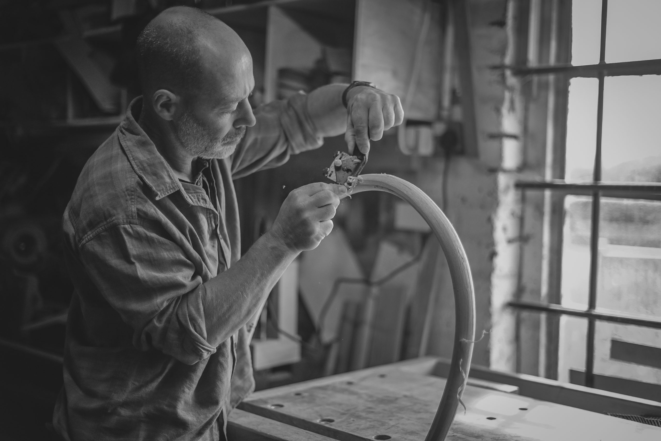 Most of the curves and flowing lines of his work are produced through the technique of steam bending timber, most of which is sourced from local woodlands. Each piece tells a unique story of the valleys, hills, rivers and mountains that makes up this land of Wales.
